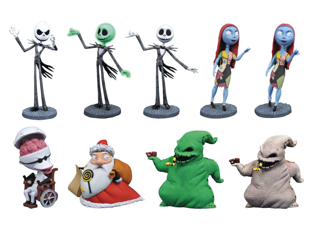 A Diamond Select Toys release! The Nightmare Before Christmas continues, with another assortment of delightfully adorable D-Formz! PVC figurines of Jack Skellington, Oogie Boogie and Sally each turn up twice in this assortment, along with rare one-per-case figures of Santa Claus, Dr. Finkelstein, a variant Jack, and glow-in-the-dark versions of Jack, Sally and Oogie Boogie! Each 3-inch figurine comes packaged in a blind box, as part of a 12-piece counter display. Designed by Barry Bradfield, sculpted by Rocco Tartamella! (Item #OCT202001, SRP: $7.99/ea.)