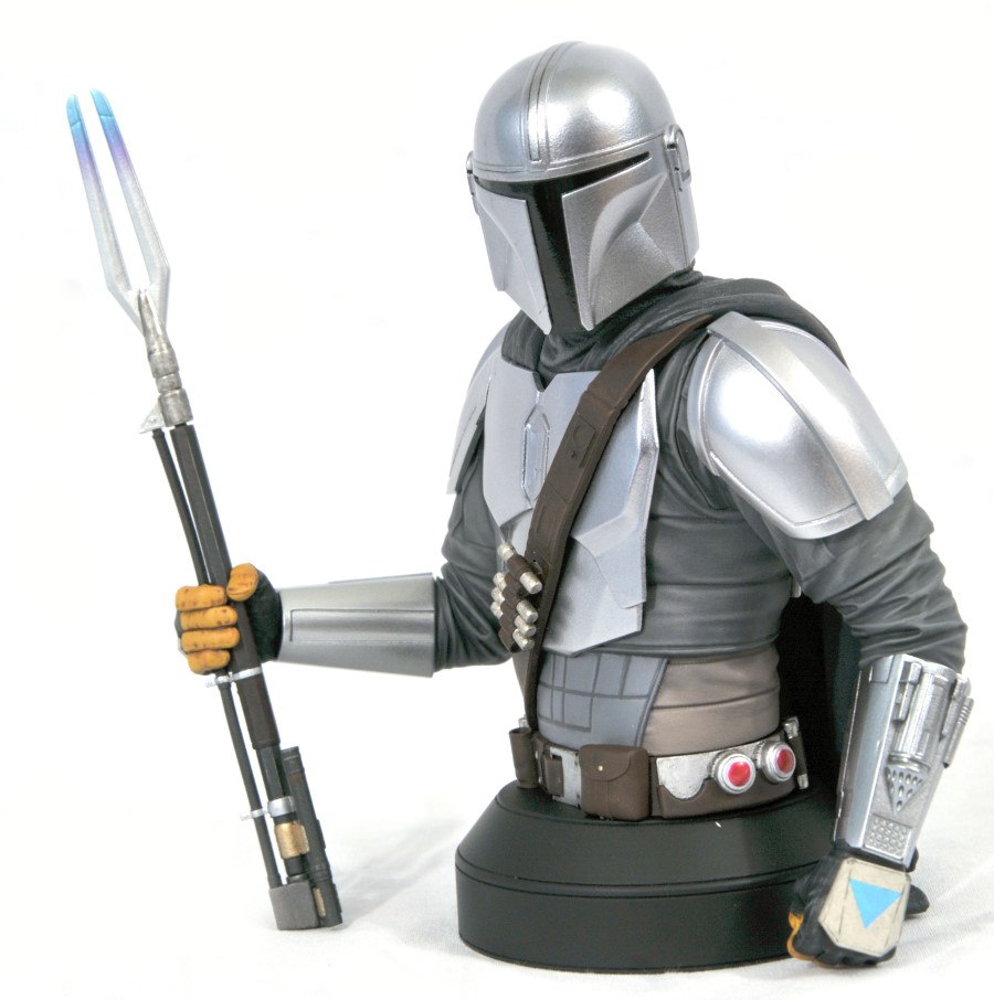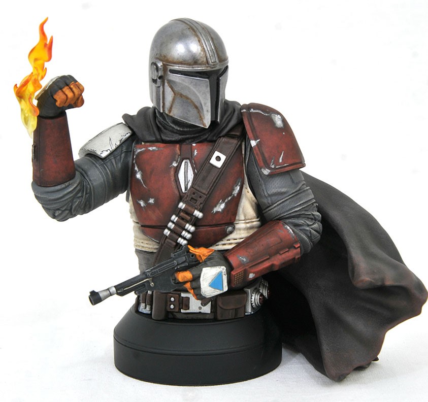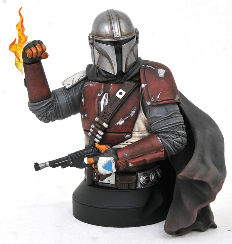 A Gentle Giant Ltd. release! People can’t stop talking about The Mandalorian on Disney+, and now the highly requested mini-bust is here! Measuring approximately 6 inches tall, this 1/6 scale bust depicts the bounty hunter with blaster and flamethrower at the ready, and features detailed sculpting and paint applications. Bust comes packaged in a full-color box with a numbered certificate of authenticity. Designed by Joe Allard, sculpted by Gentle Giant Studios. (Item #FEB202399, SRP: $120.00)