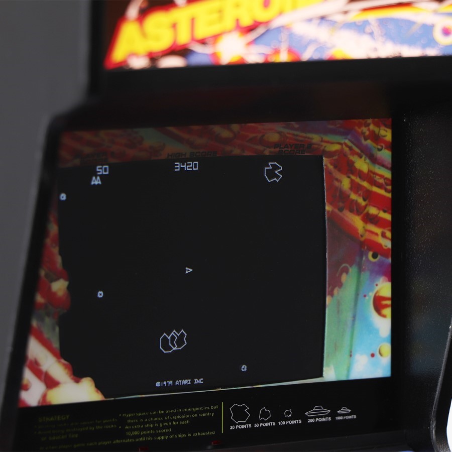 - Plays the original Asteroids arcade game on high resolution screen optimized for vector enhancement