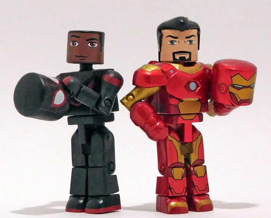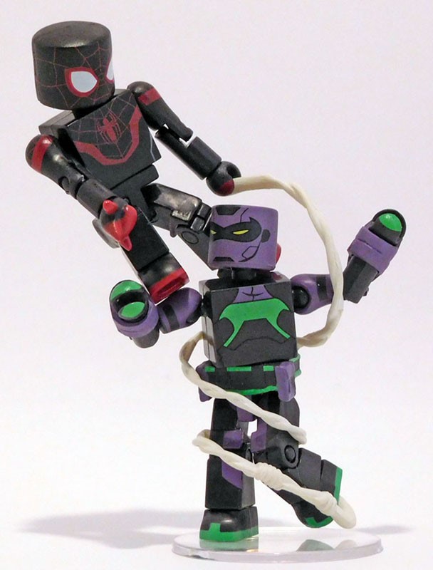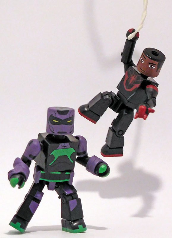 From Marvel’s Spider-Man, Miles Morales (a.k.a. Spy-D) takes on the Prowler, and comes with a removable mask, interchangeable web-slinging hands, a web line and two display stands. From Marvel’s Avengers, Iron Man faces off with the Ghost, and includes a removable helmet, removable hair piece, flight stand, and two display stands.