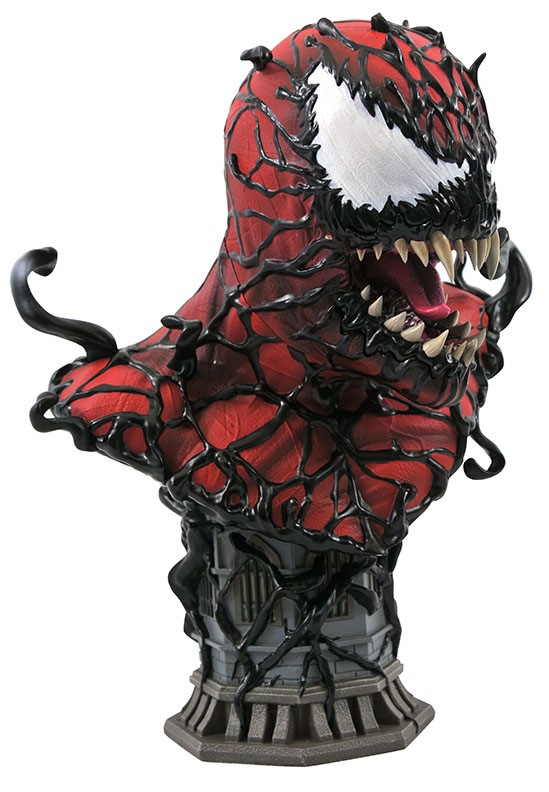 A Diamond Select Toys release! We’ve reached maximum Carnage! Measuring approximately 10 inches tall, this half-scale bust of Carnage is the latest in the Legends in 3D line. Based on his comic appearance, Carnage bares his teeth as tendrils of symbiote grip his architectural pedestal! He features detailed sculpting and paint applications, and comes packaged in a full-color box with a numbered certificate of authenticity. Limited to 1,000 pieces. Designed by Joe Allard, sculpted by Rocco Tartamella! SRP: $175.00