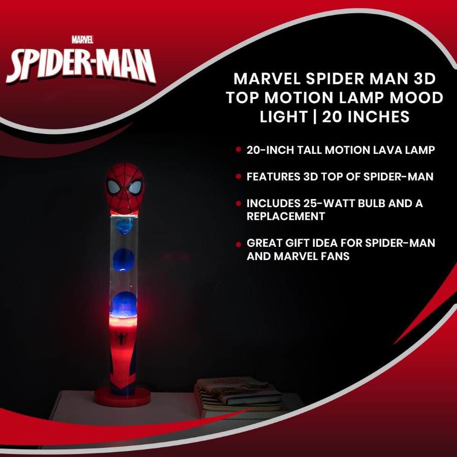 Get inspired by your favorite web-slinging hero with the Marvel Spider-Man 3D Motion Lamp, which stands at an impressive 20 inches tall. The lava-style motion lamp casts a relaxing retro glow and features a colorful 3D design of Spider Man’s iconic mask.
