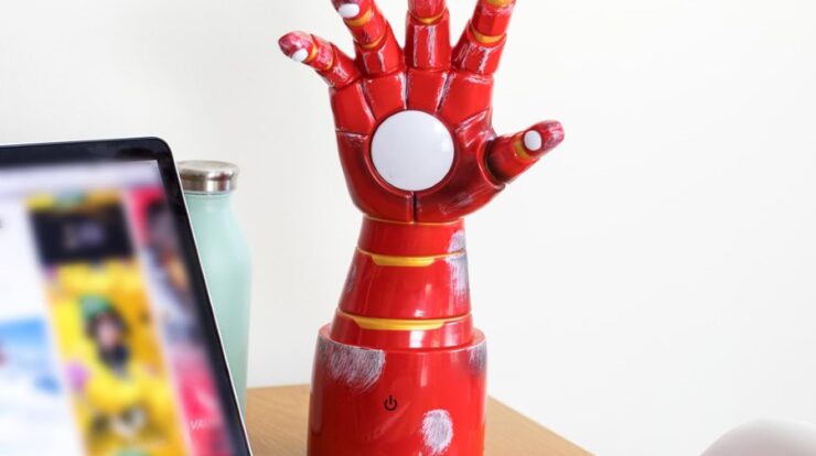 Light up your home with the energy-efficient Collectible Marvel Iron Man Gauntlet LED Lamp. Measuring 14 inches tall this lamp emits an impressive glow that will brighten up your entertainment space. A built-in 15-minute auto-shutoff feature makes this a great night light for fans of all ages.