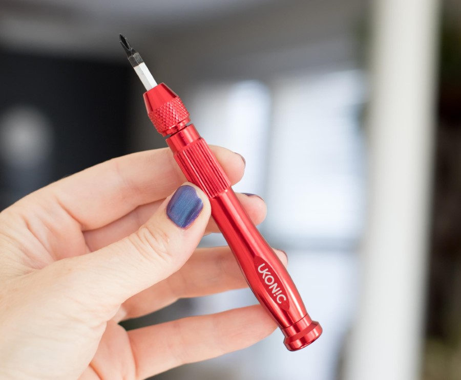 The 7-piece Marvel Iron Man 2 Replica Briefcase Screwdriver Set features a sleek red-and-metal design inspired by Iron Man’s iconic suit of armor. The set contains an easy-grip metal screwdriver handle and 7 reversible precision screwdriver blades, providing a total of 14 different sizing options for all your home and electronics repair missions.