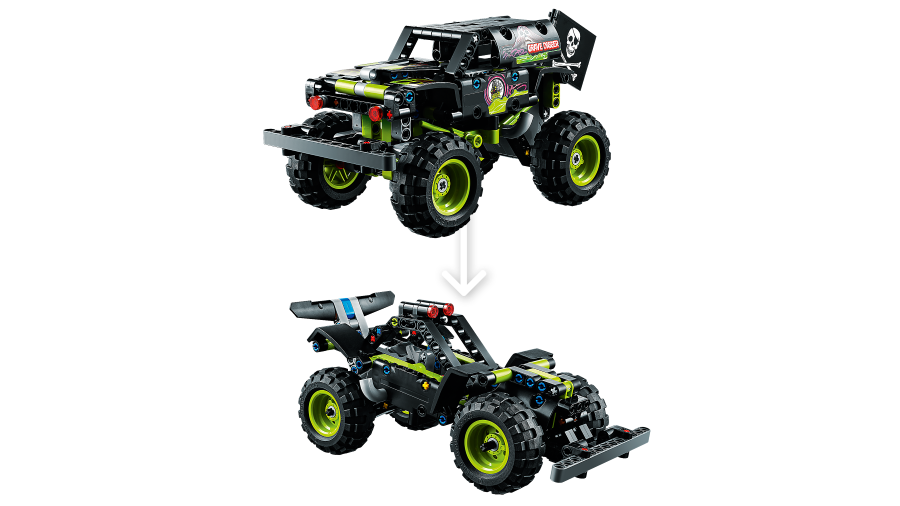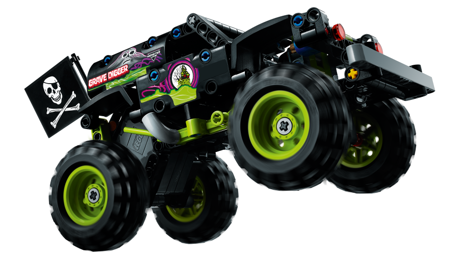 Ready for the ultimate smashing, crushing, gravity-defying monster truck experience? Then strap in and prepare for the performance of a lifetime with the LEGO® Technic™ Monster Jam® Grave Digger®. See the ghost and fire details, just like on the real truck. Huge tires and pull-back action make high-speed jumps and flips easy. Time for something new? Rebuild your truck into an off-road buggy.