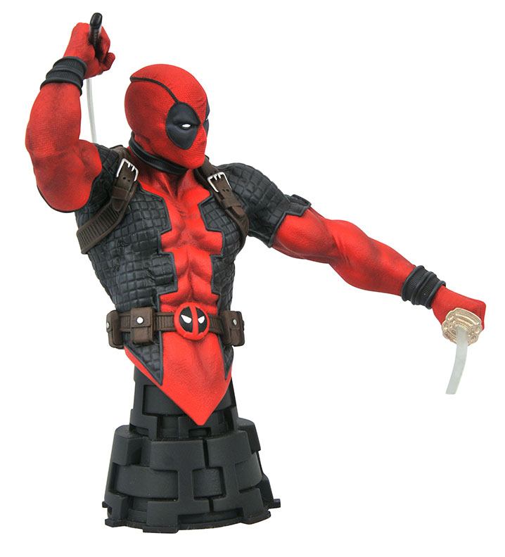 A Diamond Select Toys release! Deadpool has been cut in half before, but this time it’s for art’s sake! This 6-inch, approximately 1/7 scale bust depicts the Merc with a Mouth from the waist up, wielding a pair of katanas and featuring detailed sculpting and paint applications. Limited to 3,000 pieces, it comes packaged in a full-color box with a certificate of authenticity. Designed by Nelson Asencio, sculpted by Juan Pitluk! (Item #FEB211931, SRP: $69.99)