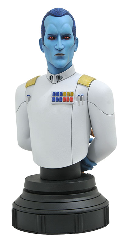 A Gentle Giant Ltd. release! Rebels beware! From Star Wars: Rebels, Grand Admiral Thrawn is the latest animated mini-bust from Gentle Giant Ltd.! Captured in 1/7 scale and standing approximately 6 inches tall, this mini-bust features detailed sculpting and paint applications, and is limited to only 3,000 pieces. It comes packaged with a certificate of authenticity in a full-color window box. Designed by Barry Bradfield, sculpted by Paul Harding! (Item #FEB211938, SRP: $60.00)