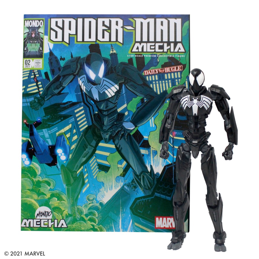 After three years of development, Mondo is proud to officially unveil the first figure in their Marvel Mecha line: Spider-Man Mecha, inspired by their love for Manga and Japanese Mecha designs from the 80s and 90s. Once the team received the blessing from Marvel they decided to move forward and design a line of large scale figures based on that idea, along with an original Manga storyline that comes packaged with these unique must-own toy collectibles. The Spider-Man Mecha replica is available for pre-order now as a regular version and a Symbiote limited-edition at MondoShop.com.
