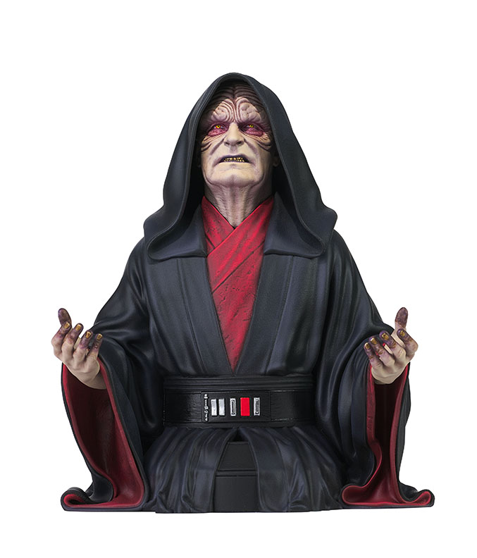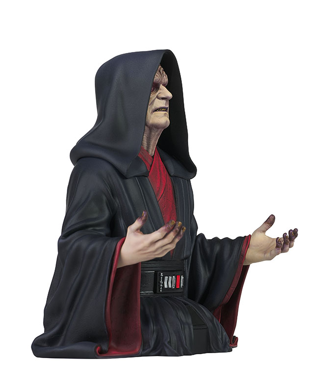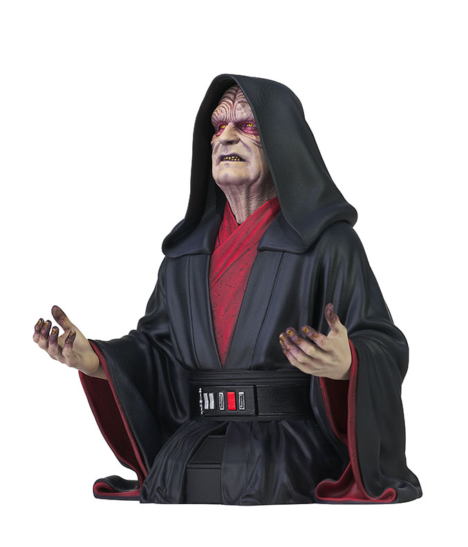 A Diamond Select Toys release! As seen in Star Wars: The Rise of Skywalker, the evil Emperor Palpatine returns! This all new 1/6 scale bust captures Sith lord Palpatine’s appearance in the latest Star Wars film, and stands approximately 7 inches tall. Limited to only 1500 pieces, it comes packaged in a full-color box with a numbered certificate of authenticity. Designed by the Silva Bros., sculpted by Gentle Giant Ltd.! (Item #APR212364, SRP: $120.00)