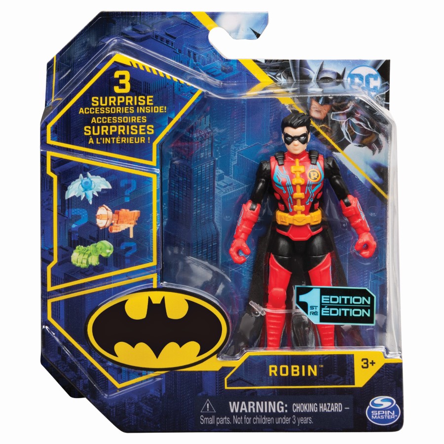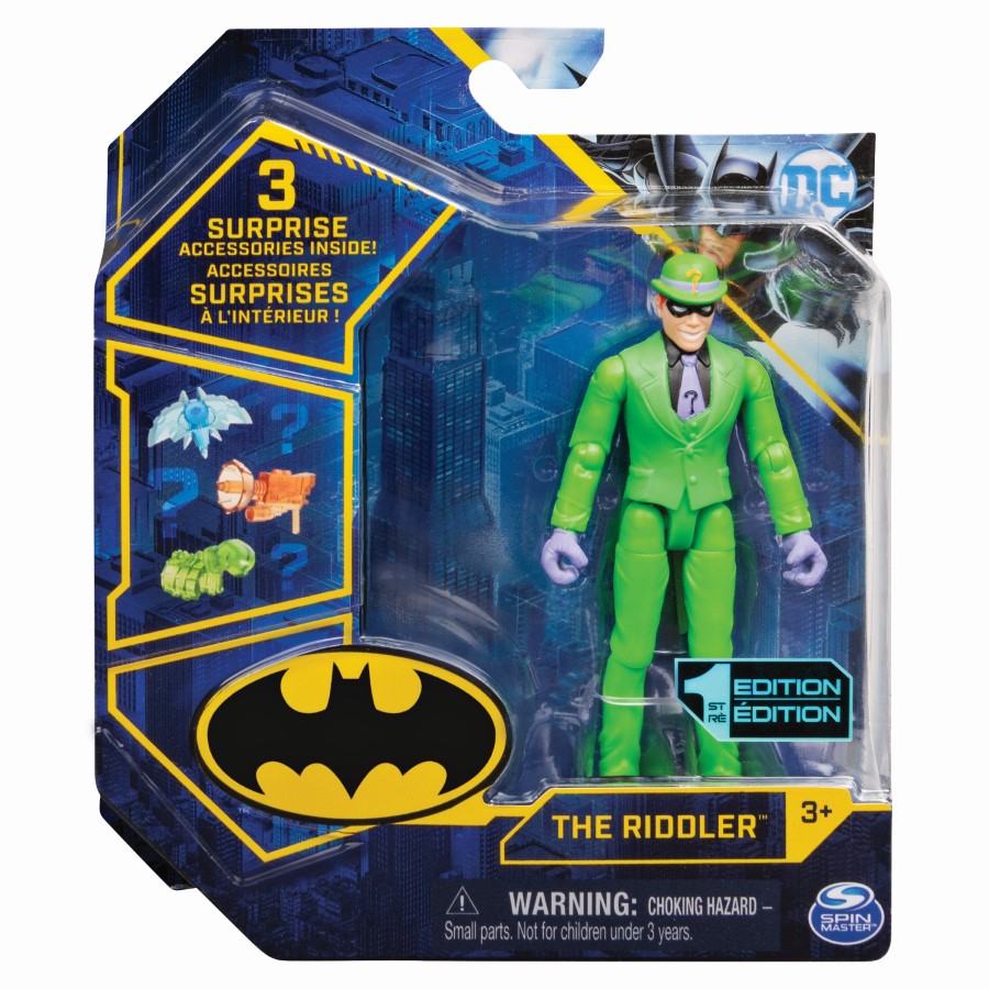 The 4-inch figures come with a cool collector poster and three mystery accessories hidden in compartments. Find gauntlets, shields, blasters and more to armor up your figure for exciting Bat-Tech missions. Each action figure also comes with a collector’s guide, so you can easily keep track of your collection. Ages 3+, MSRP $7.99. The Batfamily is well represented with Batman, Robin and (a very cool) Batwoman all being available. Of course, a hero is defined by his villians, and you can nab the Joker and Riddler among others. Spin Master’s 4-inch line goes well beyond Batman touching all corners of the DC universe.