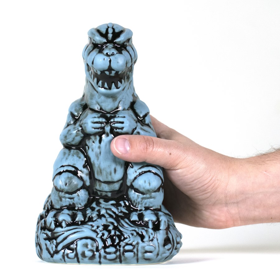 Also available now is the GODZILLA ’74 Tiki Mug – Heat Ray Variant. Perched upon a Pacific tsunami and ready to annihilate his destructive digital doppelgänger (but just as ready to provide you with radioactive refreshment), this GODZILLA ’74 tiki is a monumental masterwork of dinosaur drinkware fit for a king. The tiki is $65. Each tiki is handmade, so some variation is expected.