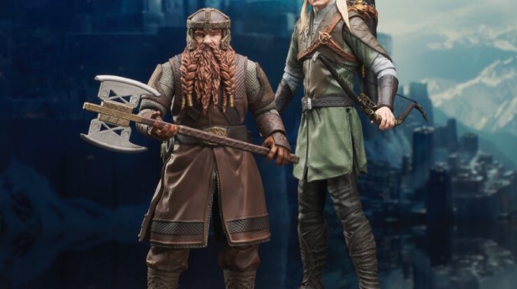 A Diamond Select Toys release! Form the Fellowship! The epic new series of Lord of the Rings action figures begins with the original odd couple, the dwarf Gimli and the elf Legolas! Each 7-inch scale figure features 16 points of articulation, detailed sculpting and a full range of accessories. Each comes packaged in a full-color window box with hangtag, and each figure comes with a piece of Sauron – collect the whole line to build the 13-inch villain! Sculpted by Gentle Giant Studios. (Item #FEB208698, SRP: $29.99/ea.)