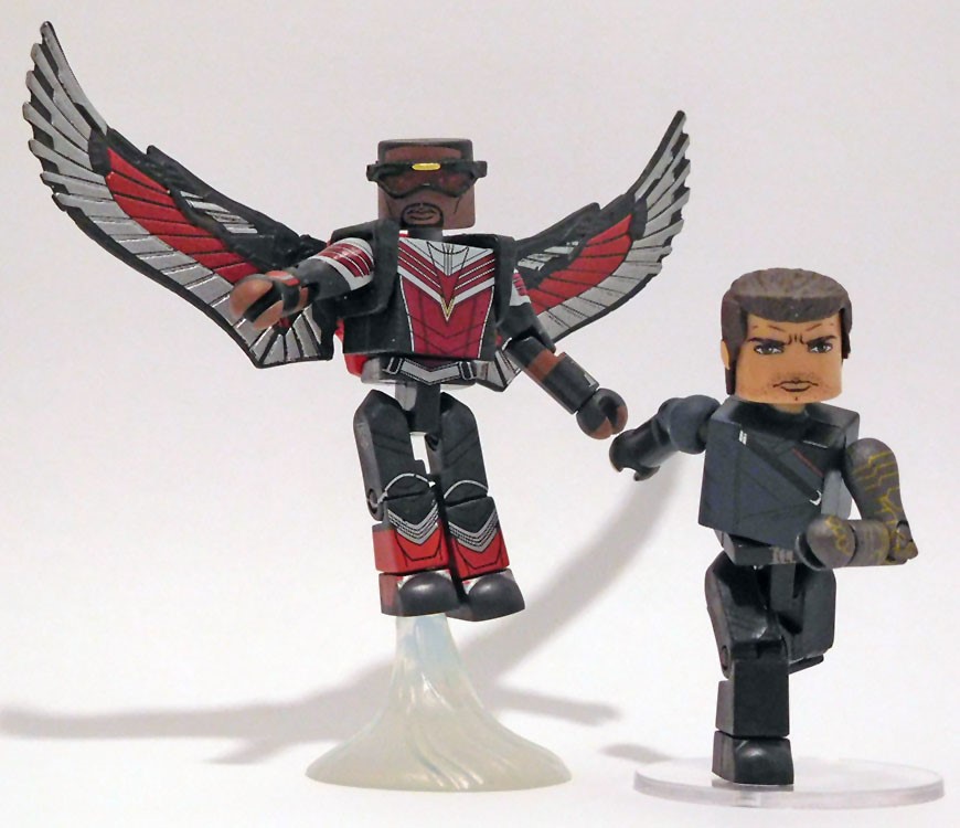 Marvel Minimates are celebrating 18 years this year, and the line is still going strong with waves based on Marvel comics, movies, animation… and now TV! The first-ever assortment of Minimates based on a Disney+ television series is available in Walgreens stores now, and it’s focused on the world of The Falcon and the Winter Soldier!