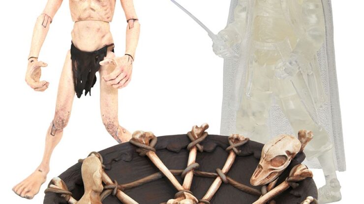 What has it gots in its pocketses? This exclusive two-pack of Lord of the Rings action figures lets the cat out of the bag, showing Frodo in his completely invisible mode, wearing the one Ring of Sauron. Standing right next to him is Gollum, who looks upset about someone stealing his “precious.” Each 4-inch action figure features multiple points of articulation, as well as detailed sculpting and paint applications. Limited to only 4,000 pieces, the pair comes packaged in replica of an opening book, along with Gollum’s boat. Designed by Eamon O’Donoghue, sculpted by Gentle Giant Studios. (Item #FEB218593, SRP: $49.99)