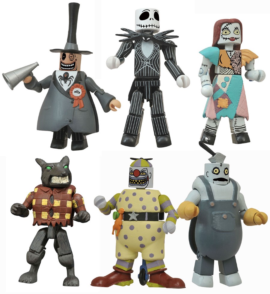 What’s this? What’s this? It’s a new gift set of Nightmare before Christmas Minimates! Based on Tim Burton’s stop-motion classic, Jack Skellington, Sally, the Mayor, the Wolfman, Behemoth and the Clown with the Tearaway Face come packaged in a hexagonal display that shows off a different character on each side. Each 2-inch Minimates mini-figure features multiple points of articulation and fully interchangeable parts. Designed by Barry Bradfield! (Item #DEC208636, SRP: $39.99)