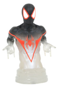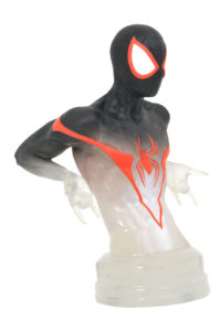 Miles Morales is one of the hottest superheroes in town – now you see him, now you don’t! Captured in mid-phase, the vanishing hero prepares to launch two weblines even as he fades from view in this exclusive 1/6 scale resin bust. Measuring about 7 inches tall, the bust comes packaged in a full-color box with a numbered certificate of authenticity. Limited to only 750 pieces! Sculpted by Joe Menna. (Item #FEB218592, SRP: $99.99)