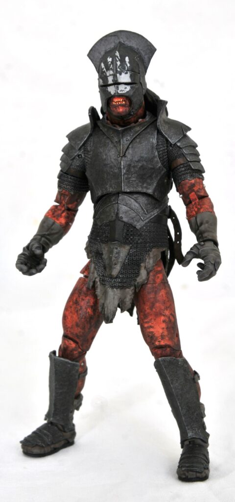 A Diamond Select Toys release! The journey continues, with another series of detailed action figures based on the Lord of the Rings film trilogy! Gandalf the Grey makes his debut in the line, with his staff and his sword Glamdring, and the other figure in the assortment is a customizable Uruk-hai Orc, including multiple interchangeable heads and weapons. Each features over 16 points of articulation, and each comes packaged in a full-color window box. Designed by Eamon O’Donoghue, sculpted by Gentle Giant Studios!