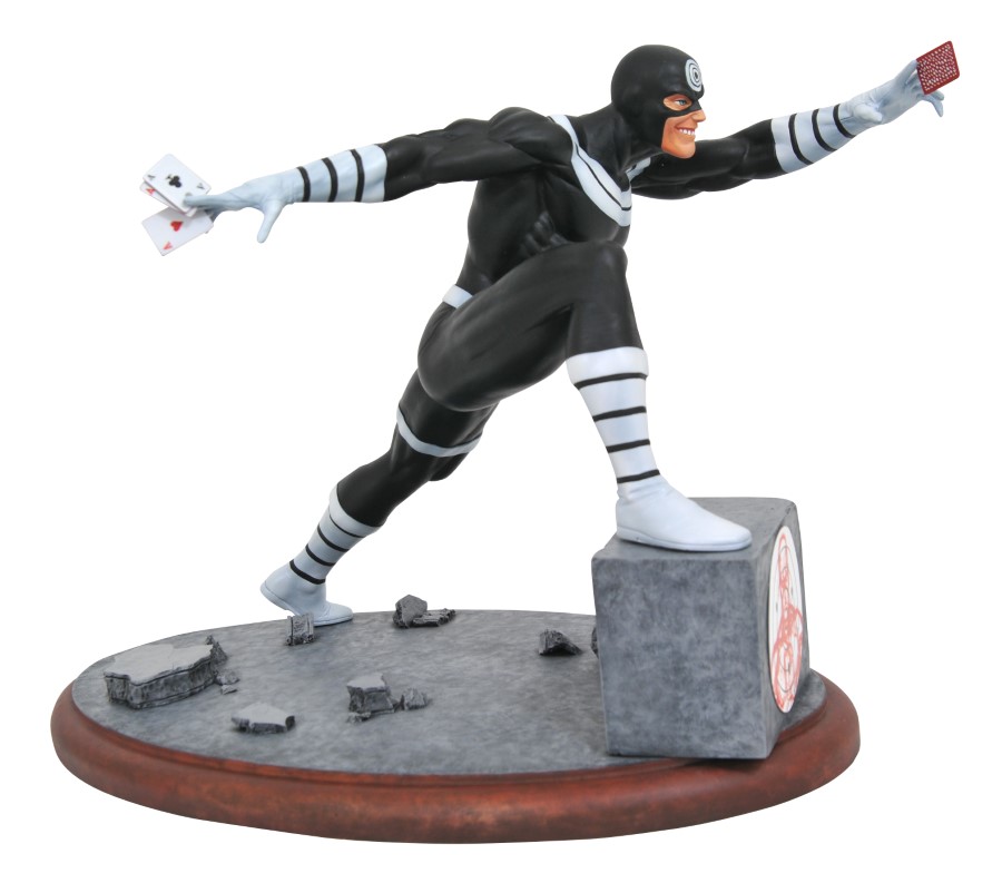 A Diamond Select Toys release! Target acquired! Daredevil baddie bullseye gets the Premier Collection treatment with this all-new 9-inch statue! With one foot up on a Daredevil target and playing cards in both hands, Bullseye is ready to take out whoever he needs to in order to get into your collection. Limited to only 3,000 pieces, it comes packaged with a numbered certificate of authenticity in a full-color box. Designed by Caesar and Clayburn Moore, hand-sculpted by Clayburn Moore.