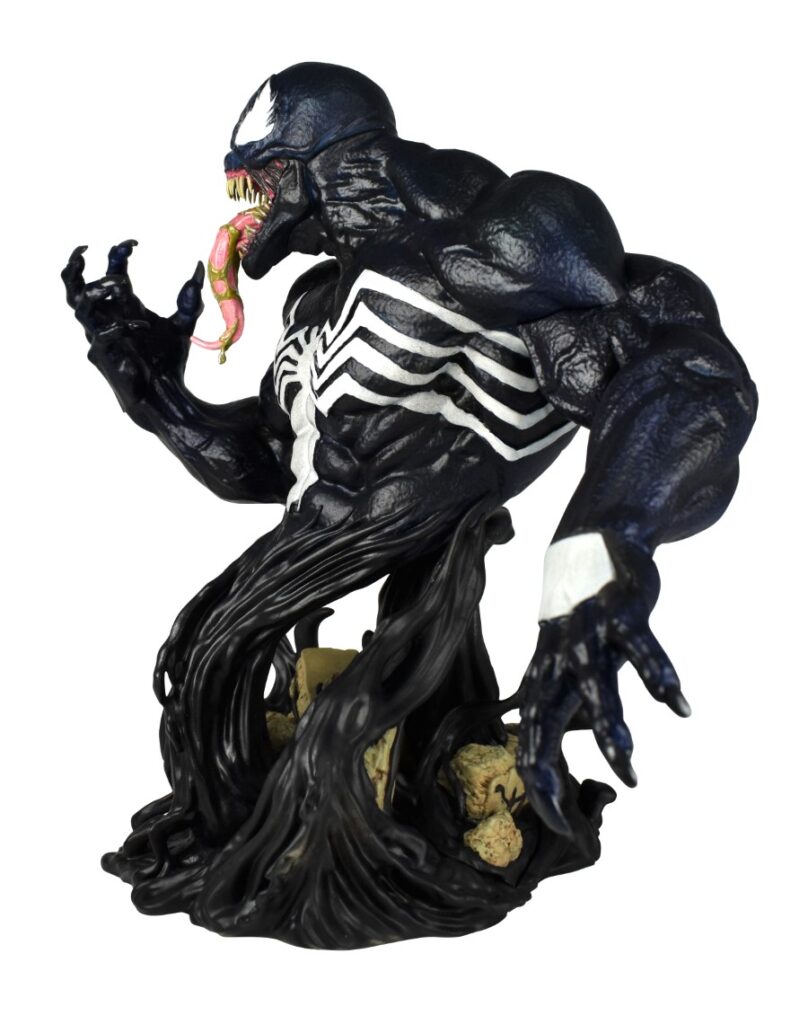 A Gentle Giant Ltd. release! He wants to eat your brains! Rising from a swirling mass of alien symbiote, his tongue extended, Venom gets his own portrait sculpture in this 1/6 scale approximately 7-inch resin bust. Based on his Marvel Comics appearance, this limited-edition bust comes packaged in a full-color box with a certificate of authenticity. Only 2,000 pieces will be made! Designed by Nelson X. Asencio, sculpted by Juan Pitluk.