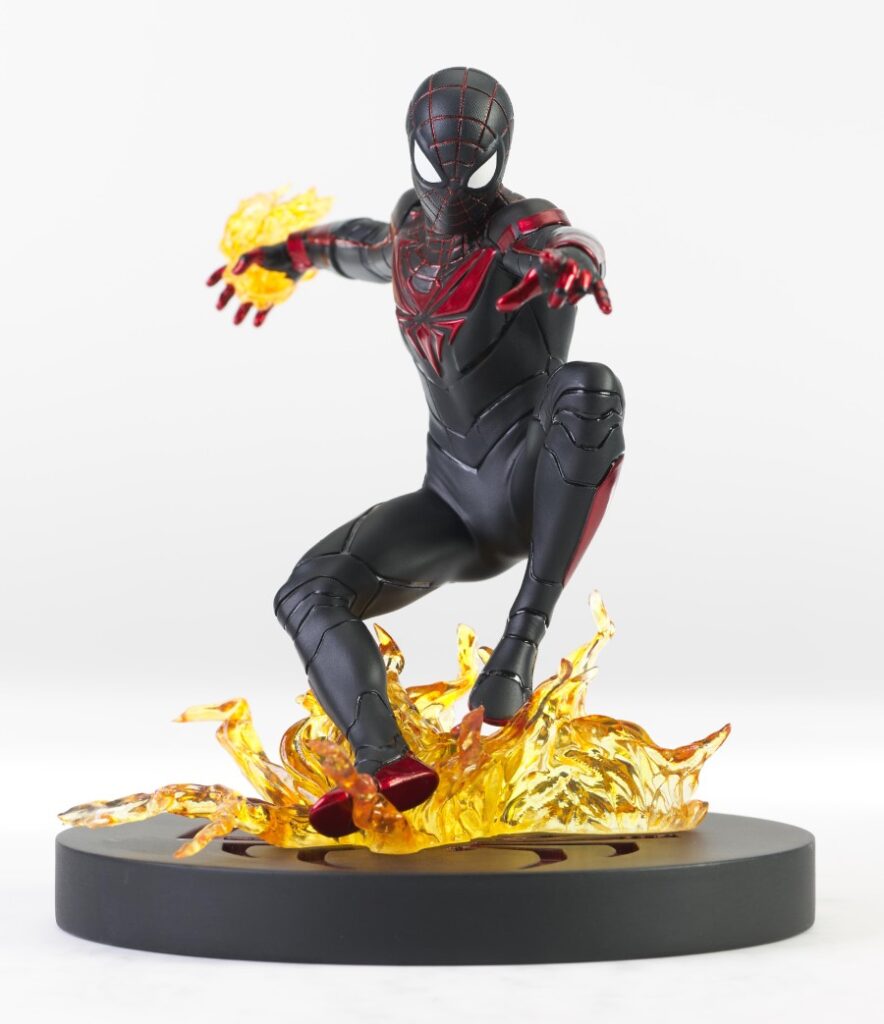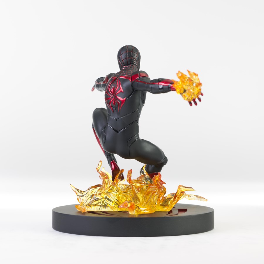 A Diamond Select Toys release! Swinging out of his hit video game, Miles Morales prepares to hurl a Venom Blast at his opponent in this all-new Gallery Diorama! Based on the game’s costume design, Miles leaps over one blast as he charges up another in this sculpture made of high-grade PVC, and featuring translucent materials that catch the light. With detailed sculpting and paint applications, it comes packaged in a full-color window box. Designed by Caesar, sculpted by Gentle Giant Studios.