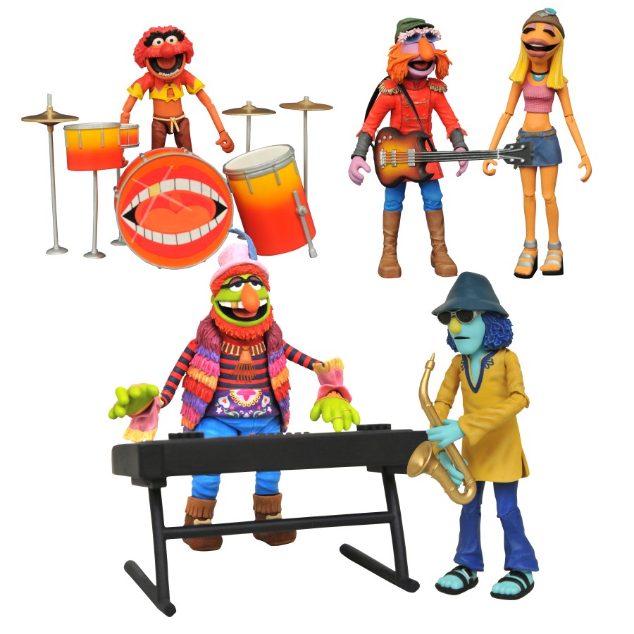 A Diamond Select Toys release! It’s time to play the music! Series 3 of the Best of the Muppets action figures features none other than the Electric Mayhem band! Dr. Teeth with Zoot, Floyd with Janice and Animal with his drum kit make up the three packs in this series, and each figure features their instrument as well as multiple points of articulation. Each figure or figure pair comes packaged in a full-color window box. Sculpted by Gentle Giant Studios!