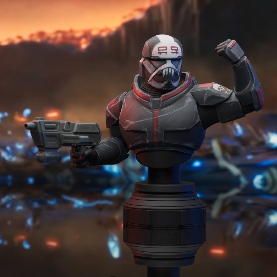 A Gentle Giant Ltd. release! The bruiser of the Bad Batch is here! Wrecker, the biggest, strongest and loudest member of Clone Force 99, is now the latest animated-style 1/7 scale mini-bust from Gentle Giant Ltd. Measuring approximately 7 inches tall, this exclusive resin mini-bust shows Wrecker without his helmet, is limited to only 3,000 pieces and comes packaged in a full-color window box with a numbered certificate of authenticity. And look for the gentlegiantltd.com exclusive version with alternate helmeted head! Designed by Barry Bradfield, sculpted by Paul Harding!