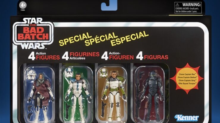 Hasbro today announced a new Amazon exclusive Star Wars: The Vintage Collection four pack. Inspired by ‘The Bad Batch’ this 4-pack includes Clone Captain Rex, Clone Captain Ballast, Clone Captain Grey and an Elite Squad Trooper. Each figure features the premium detail and articulation expected from The Vintage Collection. This set is available for pre-order exclusively at Amazon.com (that’s an affiliate link – thanks for supporting us!!).