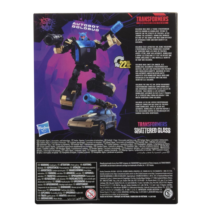 Hasbro today announced a new addition to their Transformers ‘Shattered Glass’ collection – Autobot Goldbug. The Shattered Glass Collection Deluxe AUTOBOT GOLDBUG figure stands at 5.5 inches tall, converts from robot to sports car mode in 22 steps and comes with a bazooka accessory that attaches in both modes. This GOLDBUG figure’s deco is inspired by the Shattered Glass universe, complete with a purple AUTOBOT logo. GOLDBUG was once a young CYBERTRONIAN drifter known as BUMBLEBEE trying to survive on the streets of POLYHEX. After joining the AUTOBOTS, BUMBLEBEE worked his way up the ranks and was soon offered an upgraded form and new identity as GOLDBUG.