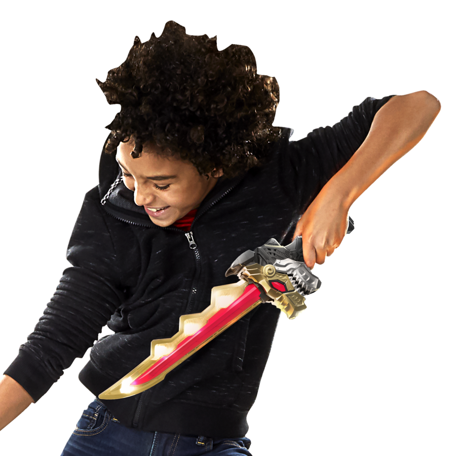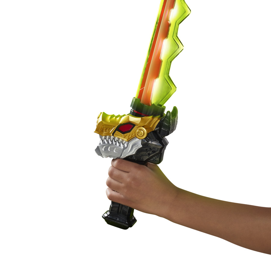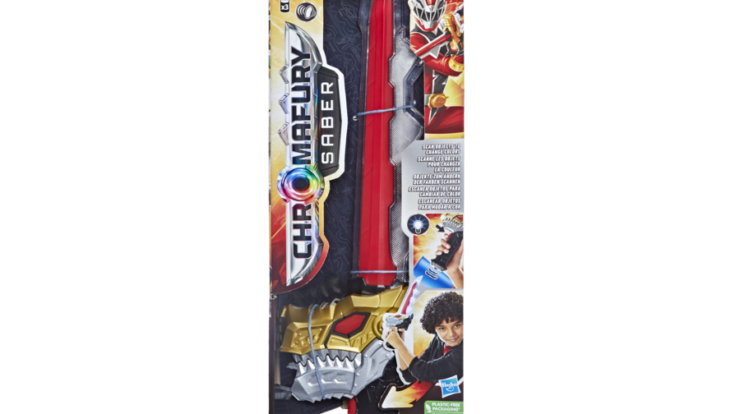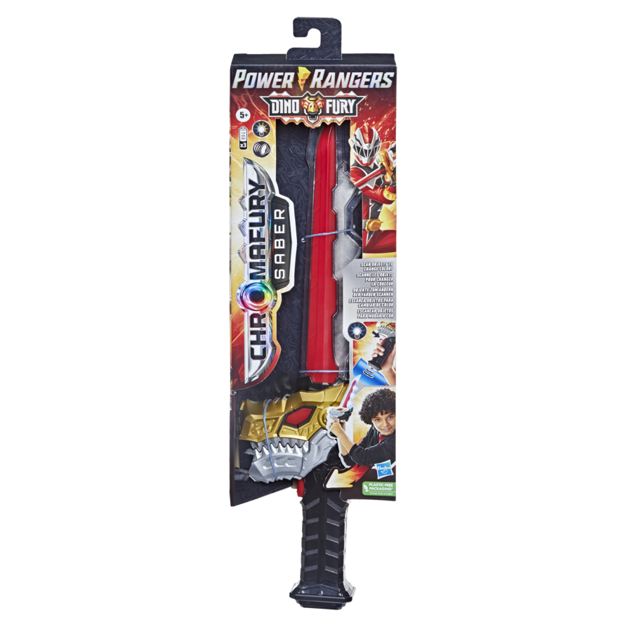 Hasbro just unveiled an all-new ORPHINOMINAL role play item, the Power Rangers Dino Fury Chromafury Saber. The Chromafury Saber uses color-scanning technology and motion-activated light and sound effects that that lets kids and fans imagine leaping into action as their favorite Ranger. To achieve the Chromafury-design, the saber uses LEDs and a light sensor in the bottom of the hilt to measure the reflected light color. Then, it translates that into a mixed LED color at the blade. Scan something red to make the LEDs in the blade light up red, like the saber of the Red Ranger..or blue..or orange. Any color is on the table for the Dino Fury Chromafury saber.