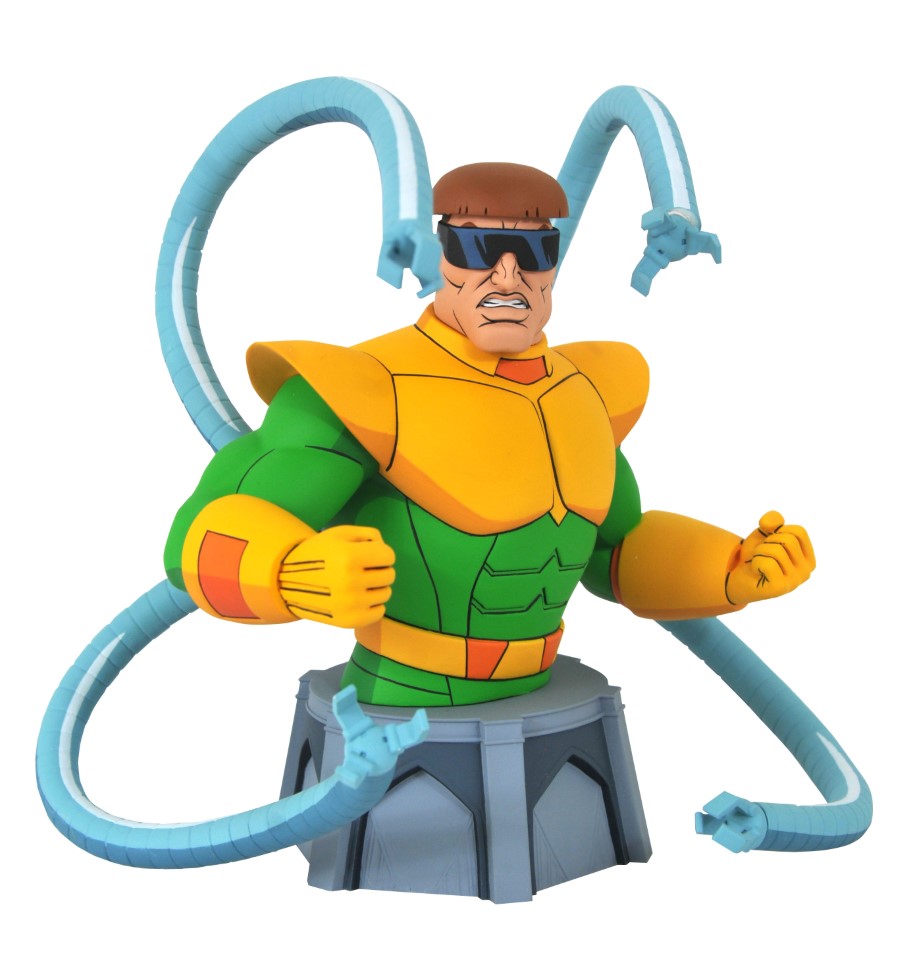 A Diamond Select Toys release! The Doctor is in! One of Spider-Man’s greatest foes has arrived in the 1/7 scale bust line, based on his appearance in Spider-Man: The Animated Series! Dr. Otto Octavius rocks four mechanical arms and a bowl cut in this new animated-style bust, featuring culptign and paint applications that leap right off the TV screen. Measuring approximately 6 inches tall, this bust is limited to 2000 pieces and comes packaged with a certificate of authenticity in a full-color box. Designed by Barry Bradfield, sculpted by Paul Harding! SRP: $69.99