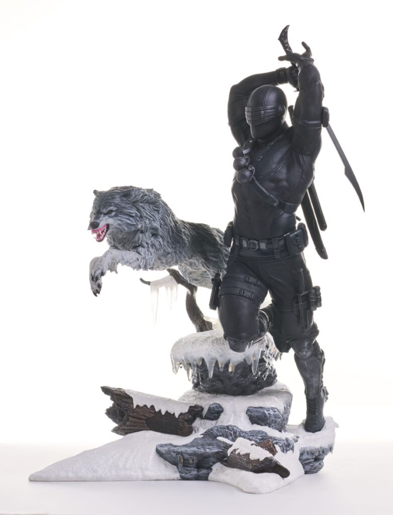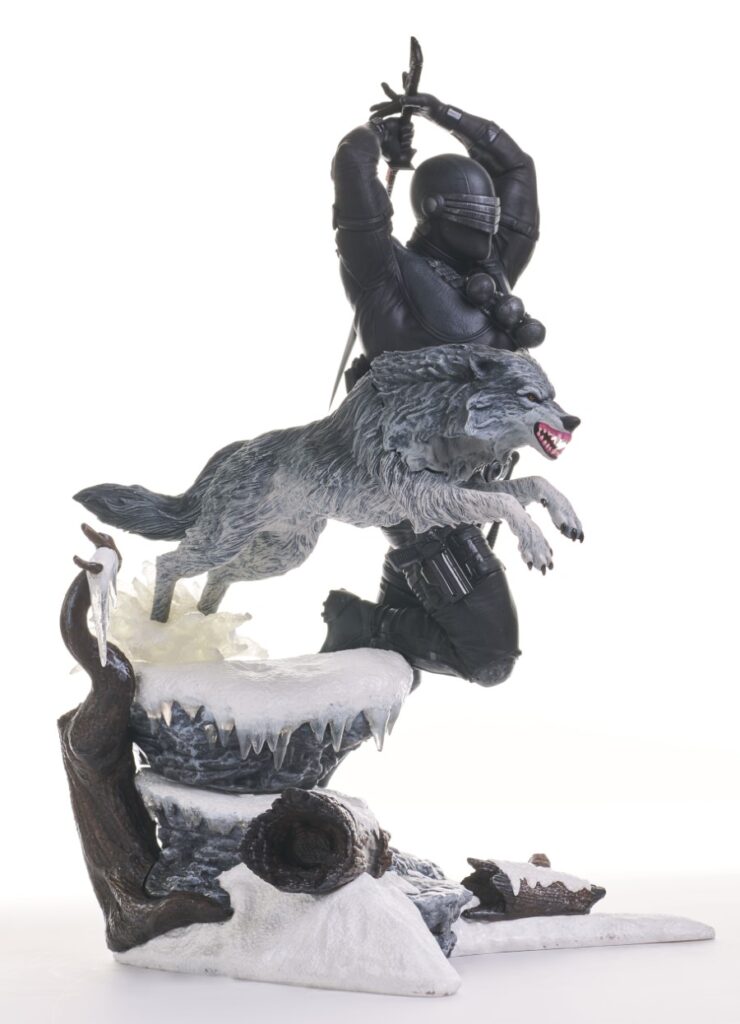 A Diamond Select Toys release! G.I. Joe’s silent ninja, Snake Eyes, leaps from a snowy ledge in this all-new PVC diorama from DST! Flanked by his wolf companion Timber, Snake Eyes wields his trademark sword as he launches his sneak attack. Measuring approximately 11 inches tall, this diorama features detailed sculpting and pain tapplications, and comes packaged in a full-color window box. Designed by Mark Wong and Tony Simione, sculpted by Jorge Santos Souza! SRP: $49.99