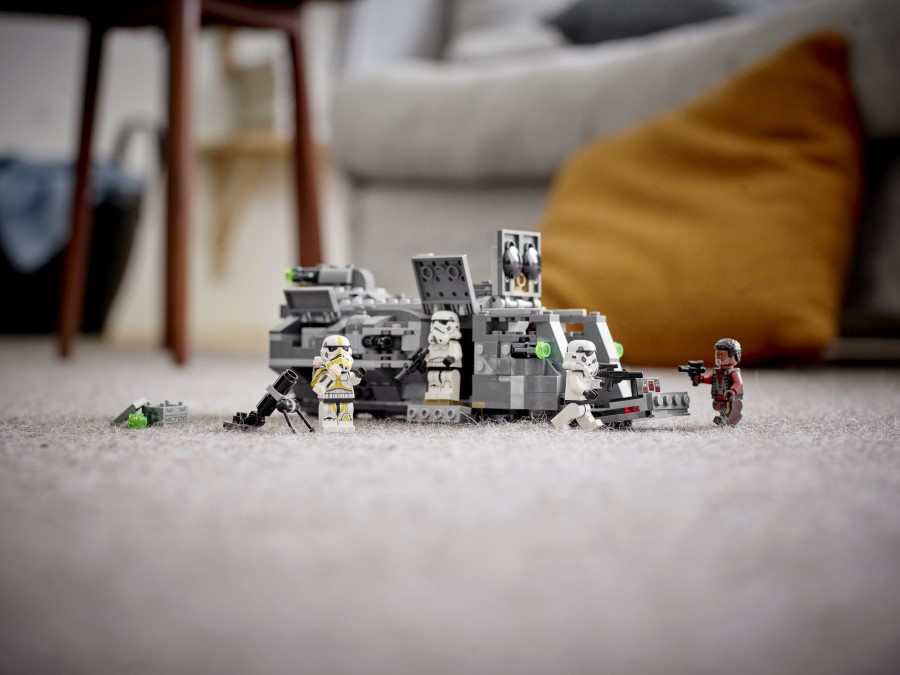 The third set revealed today is the Imperial Armored Marauder, priced at $39.99 with 478 pieces. You can recreate the bunker blasting action between Greef Karga and Stormtroopers with this LEGO® brick model of the Imperial Armored Marauder from Season 2. Four minifigures are included in this set, Greef Karga with a blaster pistol, 2 Stormtroopers with blasters and a new-for-August-2021 Artillery Stormtrooper with a mortar gun and backpack accessory element.