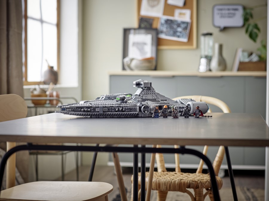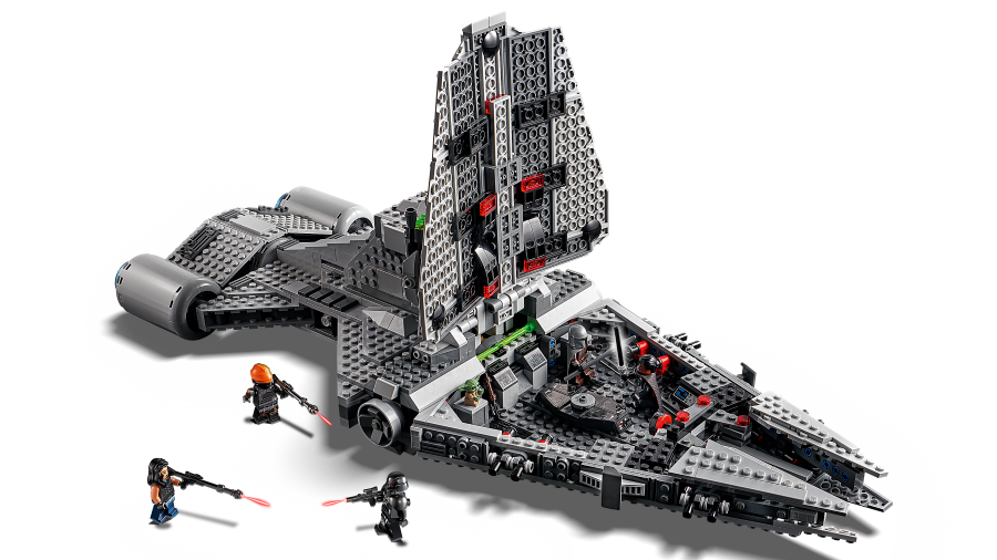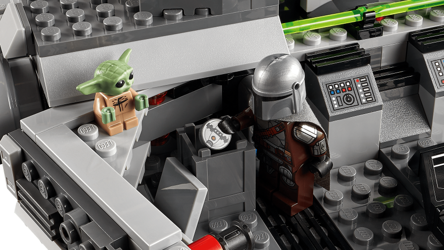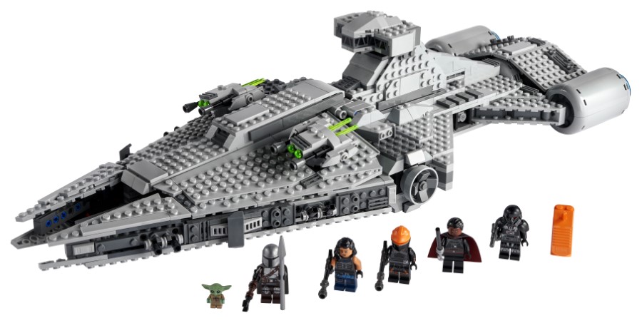 Up first is the Imperial Light Cruiser, a 1,336 piece set priced at $159.99. Straight from the epic season finale, this set lets you set up the rescue of Baby Yoda. This set includes 5 LEGO minifigures: The Mandalorian, Cara Dune, Fennec Shand, Moff Gideon and a new-for-August-2021 Dark Trooper, plus a LEGO figure of the Child (Grogu), affectionately known as Baby Yoda. The starship features a bridge that doubles as a handle for flying, 2 rotating turrets with spring-loaded shooters, 2 mini TIE Fighters and a launcher, plus a hatch to access the cabin.