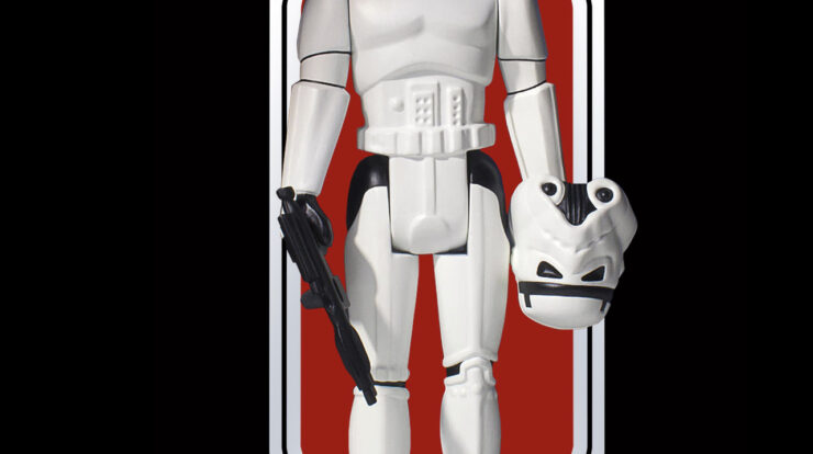 Han Solo suits up as a stormtrooper in this new Jumbo 12-inch action figure! Based on the vintage Kenner figures of yesteryear, this scaled-up figure features a blaster and a removable helmet, revealing Han Solo underneath. It comes packaged on a resealable clamshell blister card, with retro-styled artwork.