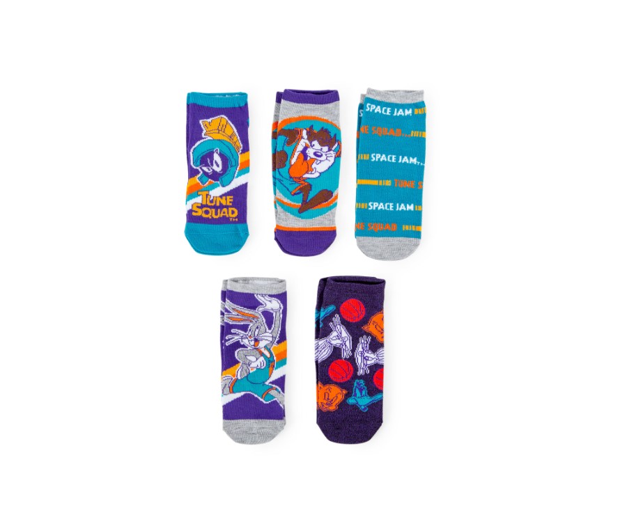 Inspired by the iconic sports comedy, these low-cut ankle socks will elevate your fandom. Join the Tune Squad team and rep all of your favorite Looney Tunes characters. Complete with 5 sets, each pair of colorful socks features a uniquely “looney” design.