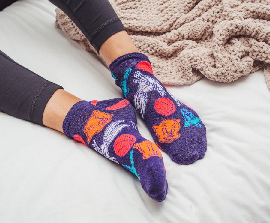 It’s game time! Dress up your day with the Toynk Exclusive Space Jam Unisex Low-Cut Ankle Socks from Hypnotic Socks.