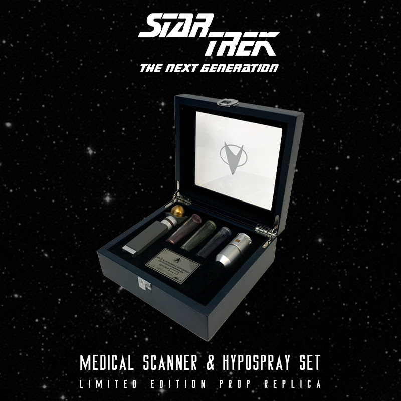 Factory Entertainment’s today announced a new Star Trek prop replica item – a TNG hypospray and medical scanner. The Star Tre: TNG Medical Set Replica has been copied directly from surviving resources in the CBS archives to ensure accuracy. Our development team also spent many hours analyzing footage to fine-tune the details.