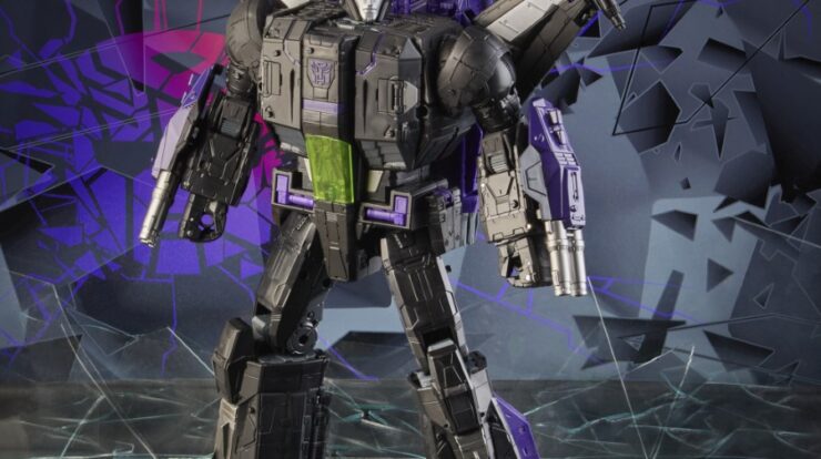The Shattered Glass Collection Commander JETFIRE figure stands at 11 inches tall, converts from robot to Cybertronian Jet mode in 36 steps, and comes with 12 armor and weapon accessories and 6 blast effects. This JETFIRE figure’s deco is inspired by the Shattered Glass universe, complete with a purple AUTOBOT logo that rotates to reveal a red DECEPTICON logo. With conflicted loyalties to the DECEPTICON cause, JETFIRE defected, joining the AUTOBOTS and their quest for universal conquest.