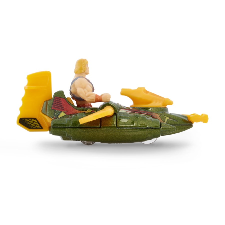 - MOTU® fans will want to collect this replica of the powerful jet-propelled military craft that transports He-Man® across the skies and just above the water of the Harmony Sea. Comes in artistic vintage-inspired window box packaging with insert that Masters of the Universe® aficionados will display with pride. Colors and decorations may vary.