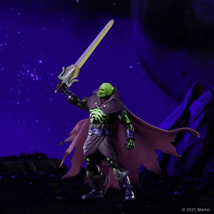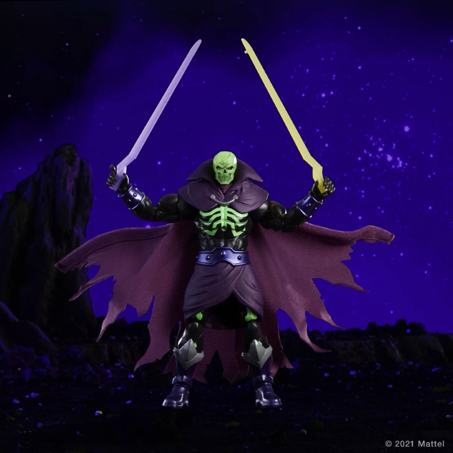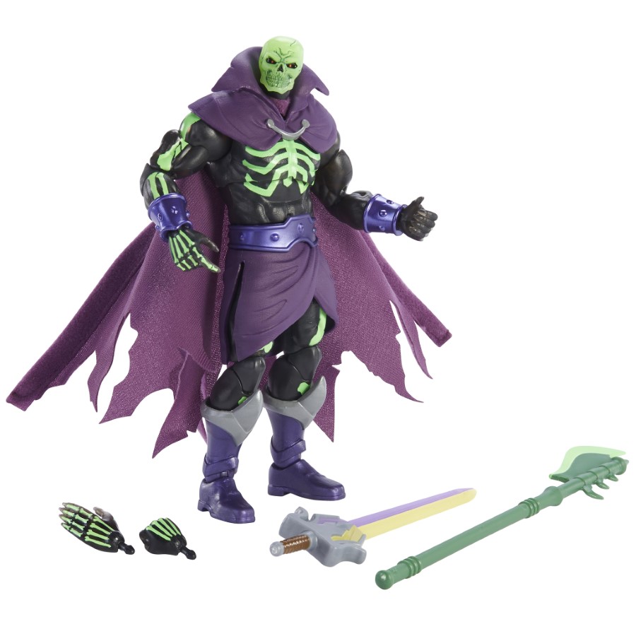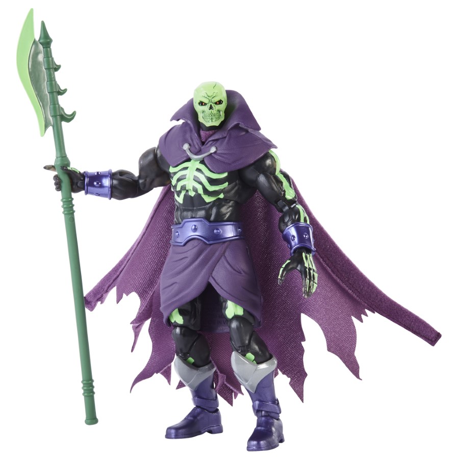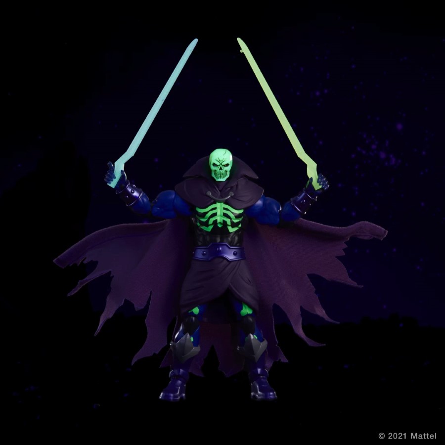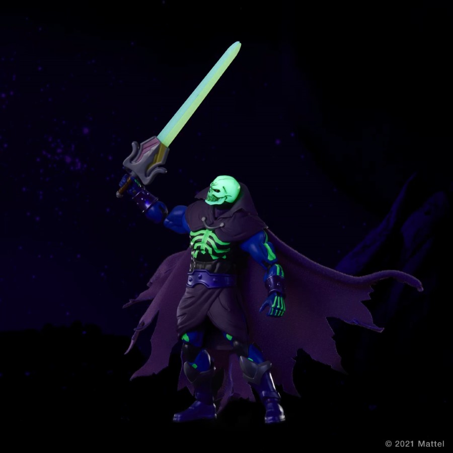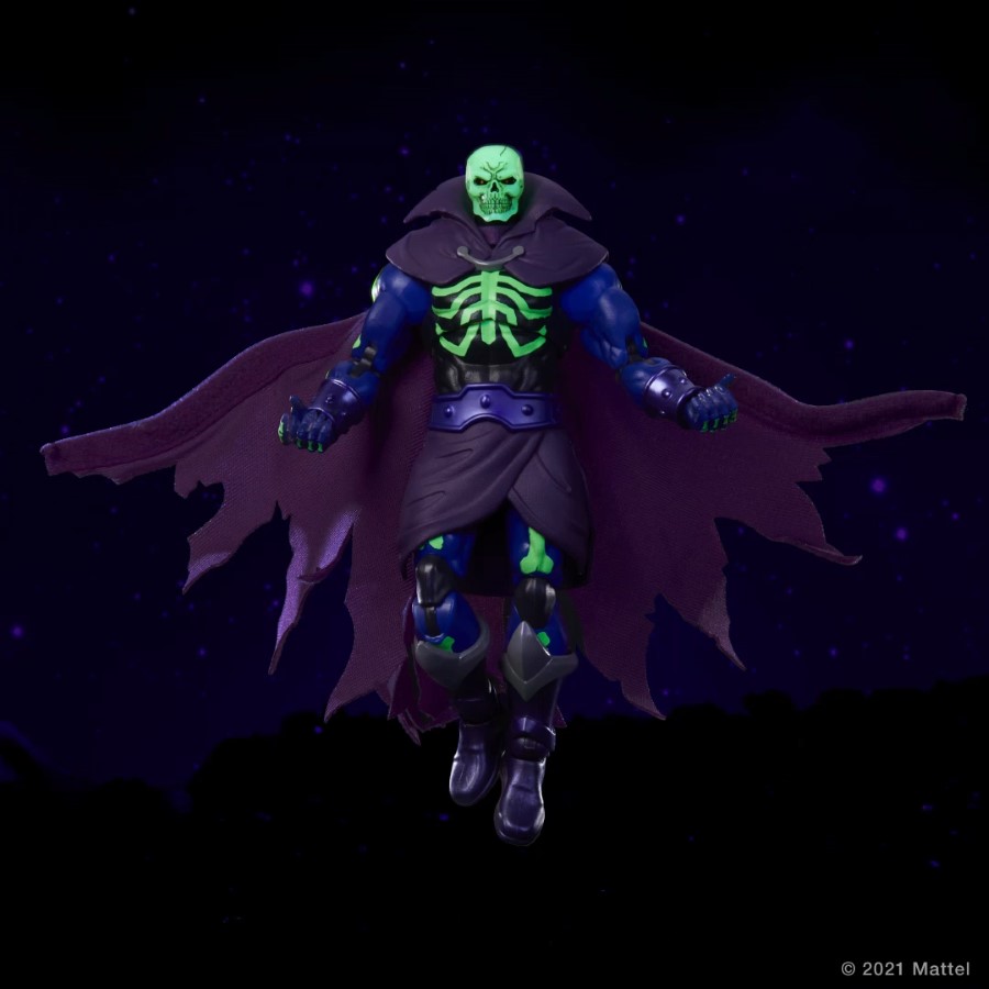 - Figure comes with posable cape and scythe of doom, plus extra hands. Special LED packaging includes purple and white lights that brilliantly display the glow-in-the-dark effect! A must have for collectors and fans who treasure the MOTU® legacy and also appreciate the expertly crafted updates of the Masterverse line. By the power of Grayskull™! Each sold separately, subject to availability. Colors and decorations may vary.
