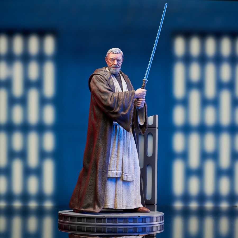 A Gentle Giant Ltd. release! Relive the magic of A New Hope with this all-new statue of Obi-Wan Kenobi in his Episode 4 look! Captured during his battle with Darth Vader aboard the Death Star, with his lightsaber energized, this approximately 12-inch statue features detailed sculpting and paint applications, and is limited to only 2000 pieces. It comes packaged in a full-color box with a numbered certificate of authenticity. Designed by Elliot Fernandez, sculpted by Gentle Giant Studios!