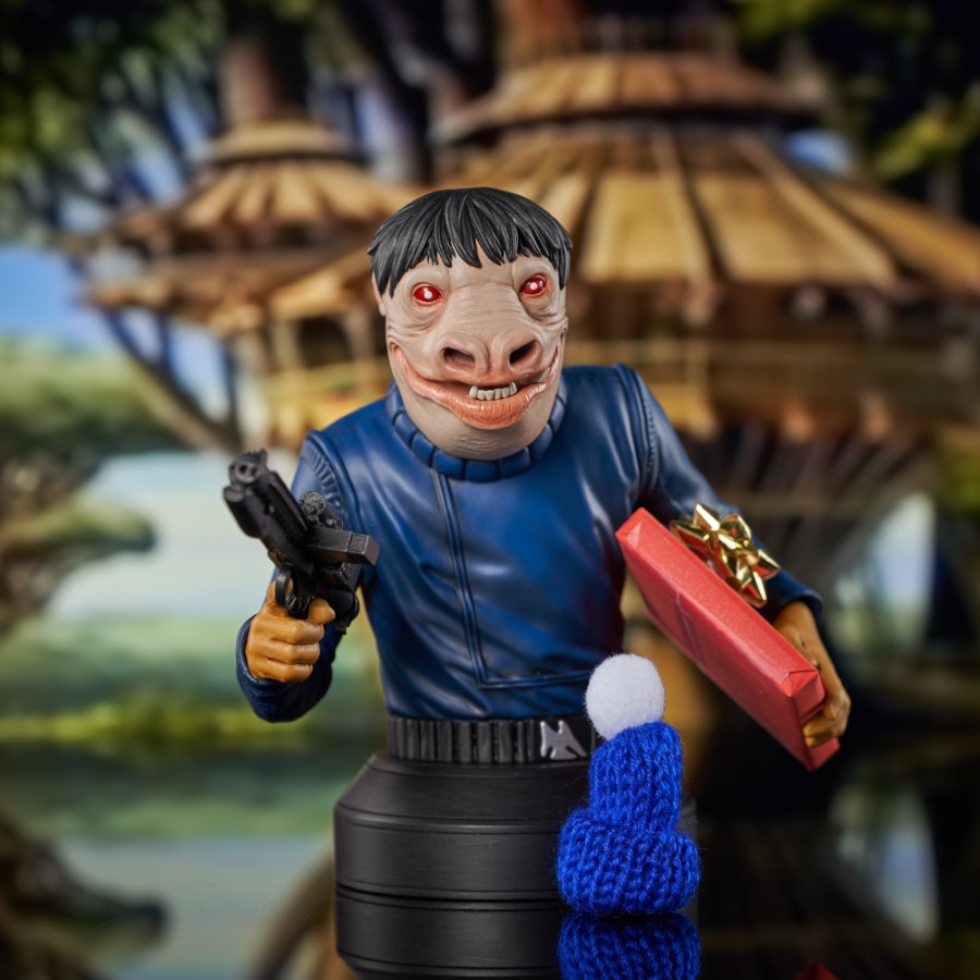 A Gentle Giant Ltd. release! Only available in the Sears Cantina Adventure Set, Blue Snaggletooth was somewhat of a rarity for vintage action figure collectors. Now, he’s the newest 1/6 Scale Bust in the Star Wars line! His real name a mystery, this approximately 5-inch bust shows the Snivvian with his blaster drawn, and is limited to only 2000 pieces. It comes packaged in a full-color box with a numbered certificate of authenticity. Designed by Leo Silva, sculpted by our own in-house team of professional artists!