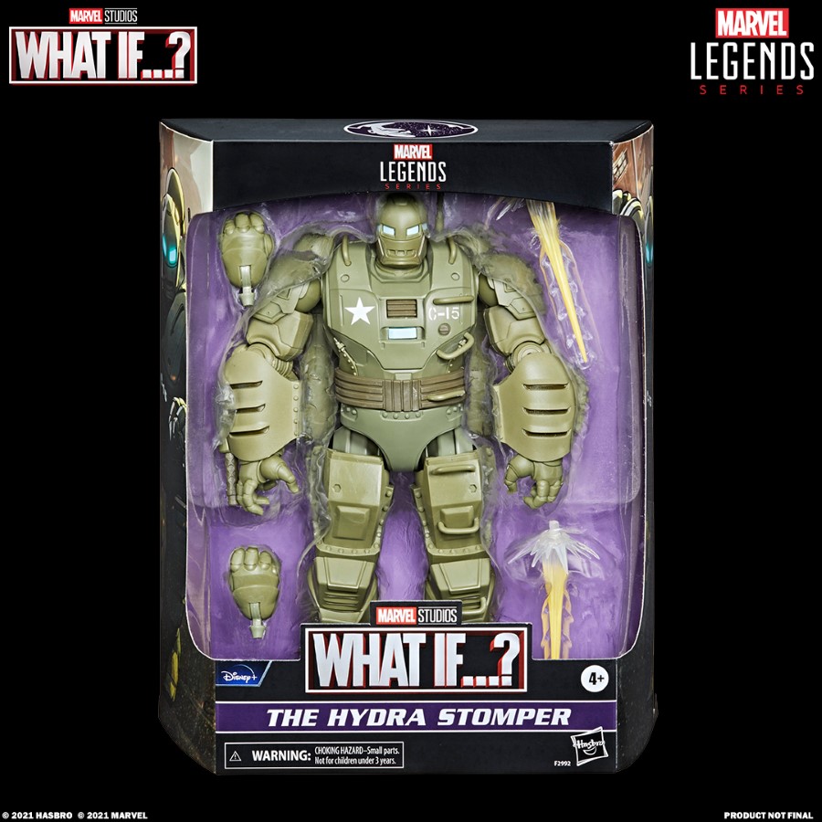 The ‘What If…?’ wave, coming this fall, features T’Challa as Star-Lord, a Zombie Captain America, Captain Carter, a Zombie Hunter Spidey (which with the cape removed does look like a Disney Avenger’s Campus Spidey), Doctor Strange Supreme, Sylvie from ‘Loki’ and Heist Nebula. The build a fig for this wave is The Watcher. Also along side the wave is an oversized figure – the Hydra Stomper.