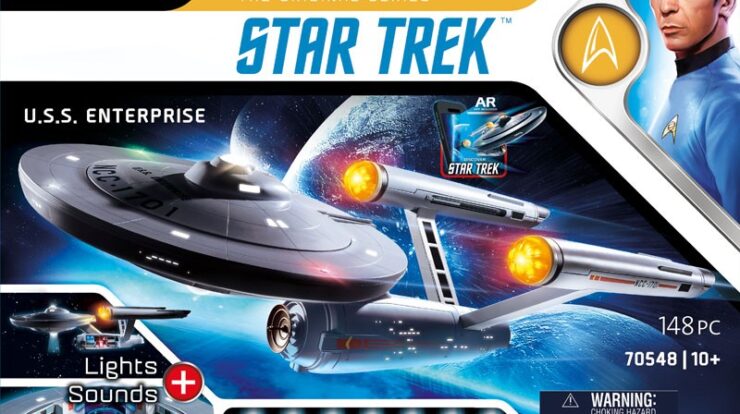 The 70548 Star Trek – U.S.S. Enterprise sees the Star Trek universe joining forces with one of Germany’s iconic greats: PLAYMOBIL. For a long time now, PLAYMOBIL hasn’t just been an integral part of children’s play, it has also increasingly expanded to include themes that are popular with adult fans too. This Star Trek licence cooperation, and the first PLAYMOBIL model of the Enterprise, is all about authentic details and numerous features to inspire fans: the 1-metre-long Constitution-class vessel is the pride of Starfleet, and comes with plenty of mesmerising details… but more about these will be revealed soon! The specially designed mounting will help to make sure this legendary ship is presented in the best possible way. Lights, sounds and other technical features are included alongside a unique AR tie-in app,