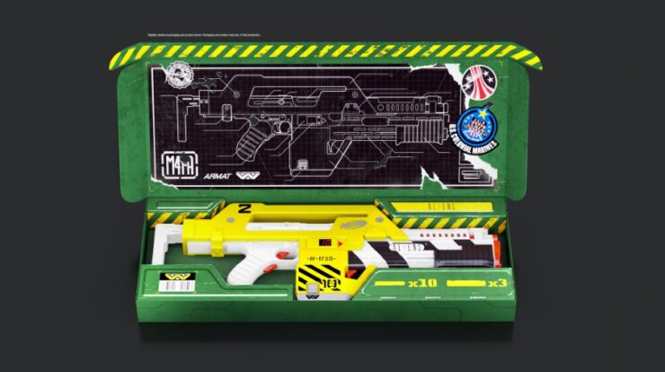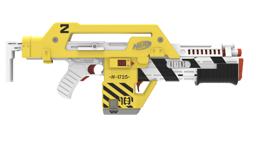 Celebrate the 35th anniversary of the iconic Aliens film with the Nerf LMTD Aliens M41A Pulse blaster, capturing authentic details inspired by the equipment of the United States Colonial Marine Corps. Imagine yourself travelling to LV-426 to battle waves of Xenomorphs from this legendary film.