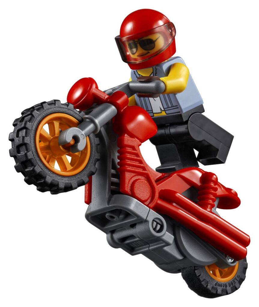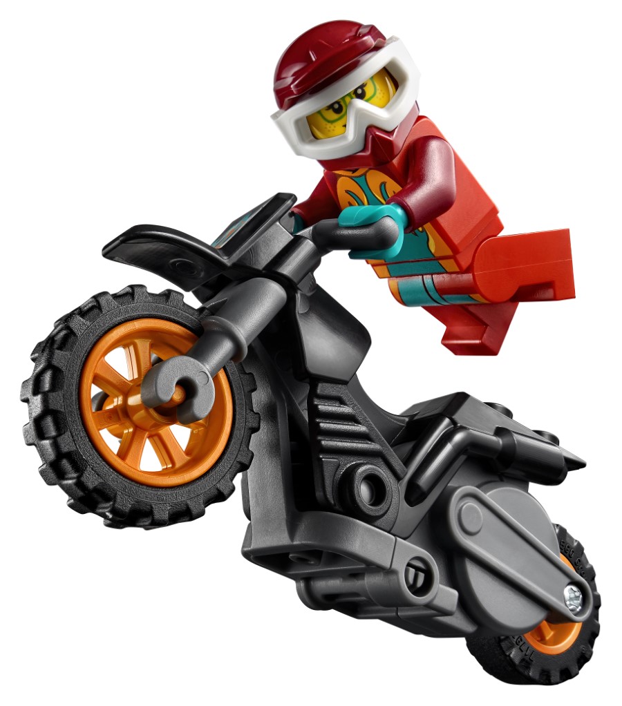 A sensational new play experience has burst into the LEGO® City arena, expanding the play theme to new heights and storylines with LEGO® City Stuntz. The adrenaline-fueled range features exciting new fly-wheel powered bike functionality and endless role play opportunities to spark creativity and imagination through play.