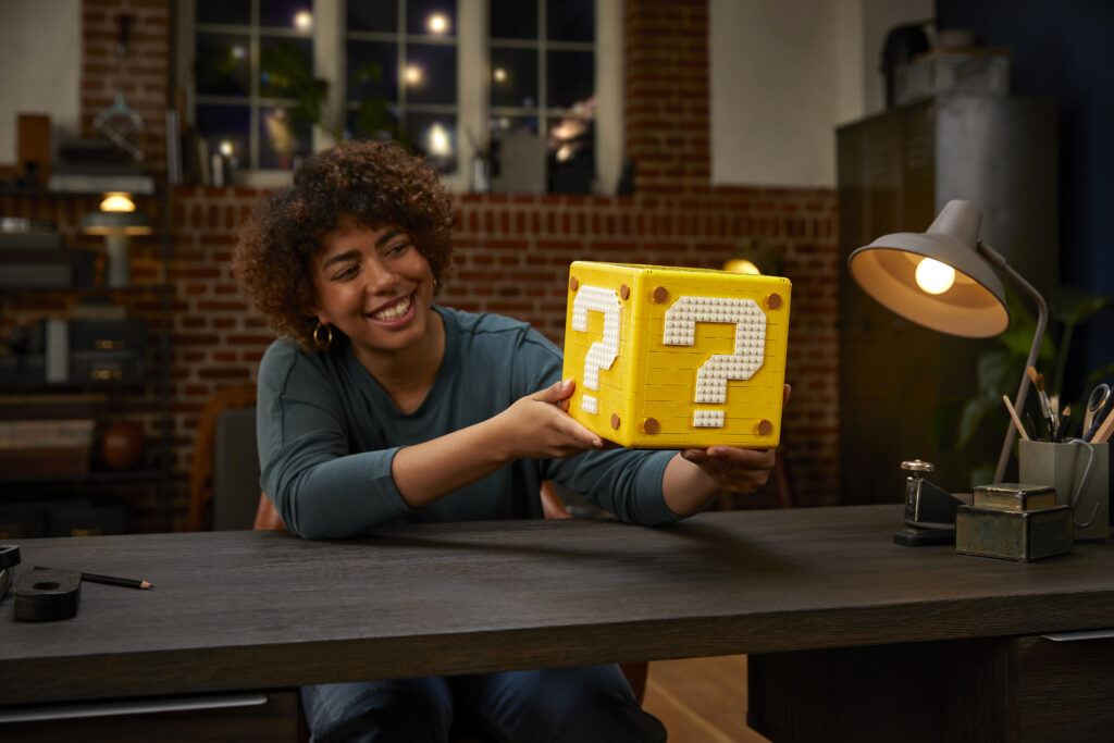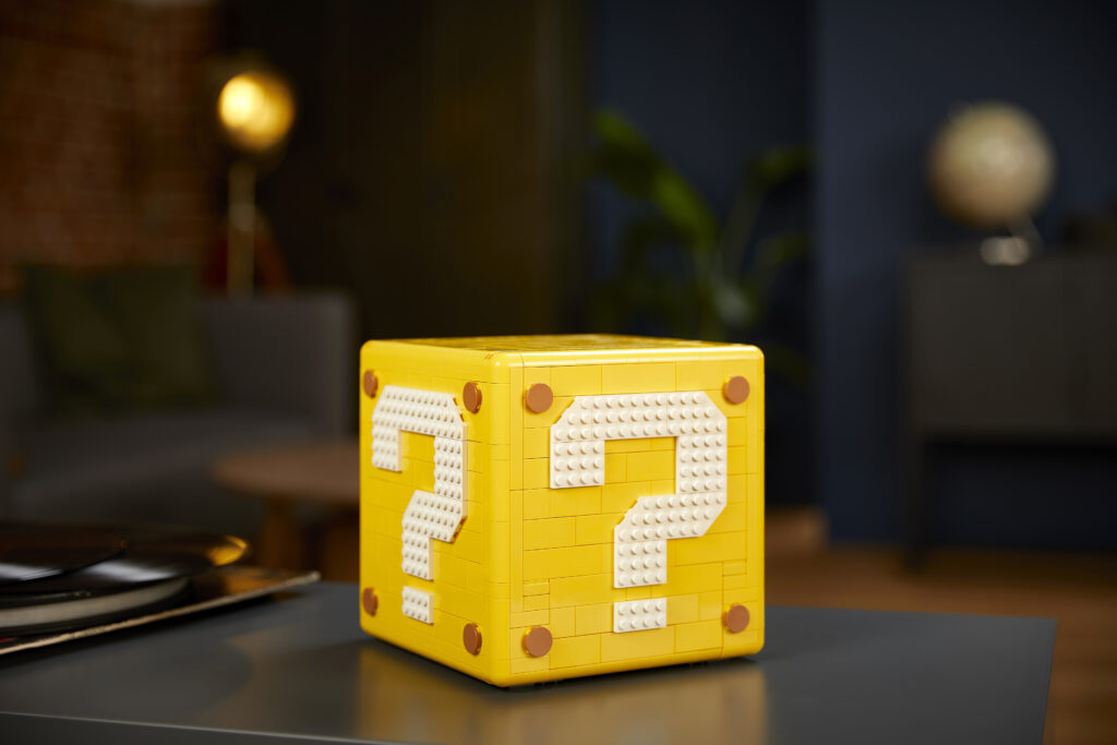 - The iconic Super Mario Bros. ? Block is built with 2064 pieces.