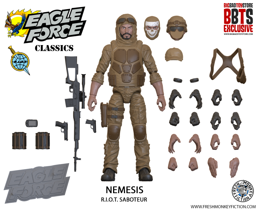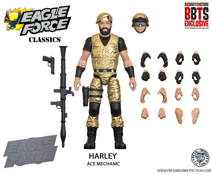 “BigBadToyStore and Fresh Monkey Fiction are partnering on an unprecedented, four week event to celebrate 40 years of Eagle Force,” said Fresh Monkey Fiction founder Bill Murphy. “BBTS is exclusively offering 12 exclusive, 40 Anniversary figures on day 1. And fans will want to follow Fresh Monkey Fiction on social media for updates during the event including exclusive images, behind-the-scenes material, and just maybe a surprise or two.”