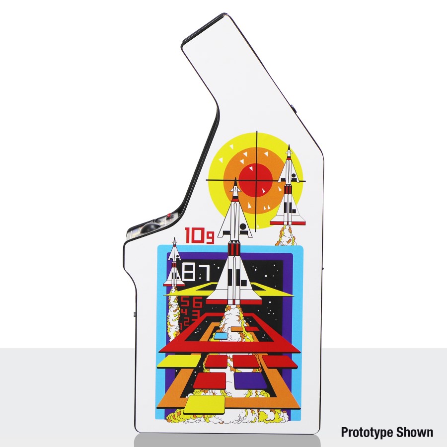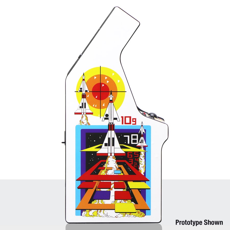Missile Command X RepliCade Standard Edition is a faithful recreation of the 1980 arcade original, featuring a Trak-Ball interface, illuminated Volcano-style buttons, and striking cabinet art. A unique CRT FX lens transforms the built-in LCD to look like a CRT display from the era — scanlines and all.