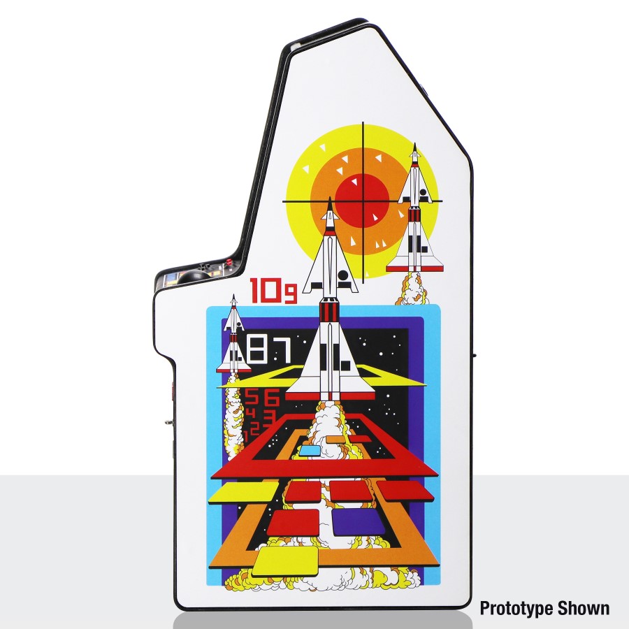 The Missile Command X RepliCade Field-Test Edition includes everything from the Standard Edition along with some additional flourishes. Most notably the cabinet features an oversized marquee panel that lights up and blinks, helping to sell the fantasy that players are the last line of defense against an incoming nuclear attack. The taller cabinet also features rarely seen pre-production artwork on the control panel and cabinet — a special treat for old-school gamers.